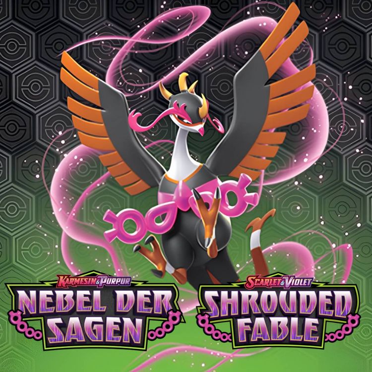 9 Boosterpacks der Pokémon-Sammelkartenspiel-Erweiterung Karmesin & Purpur – Nebel der Sagen