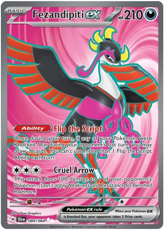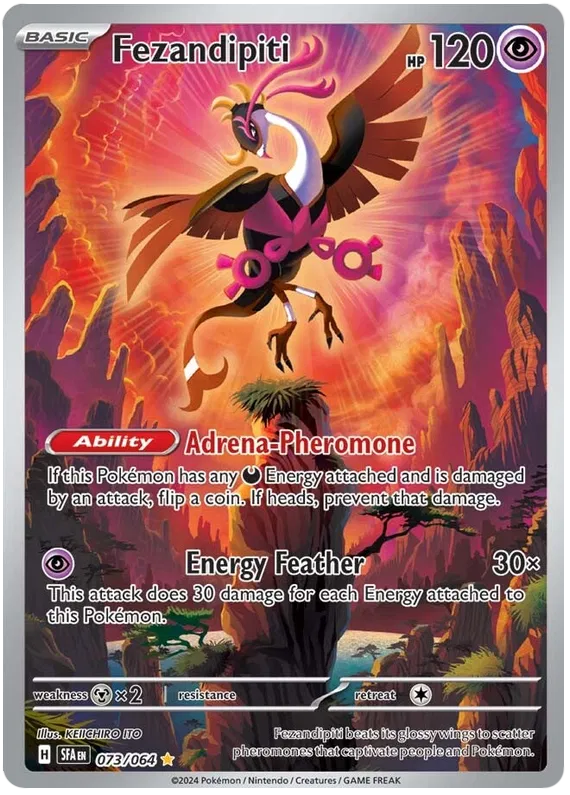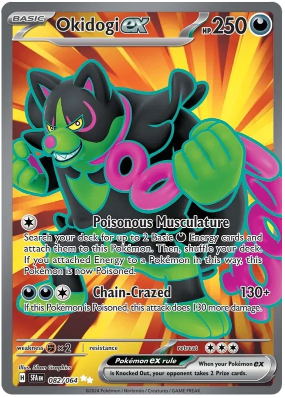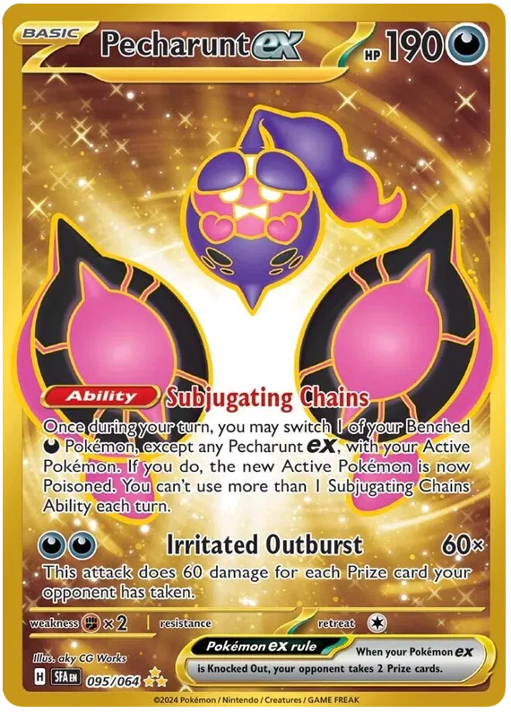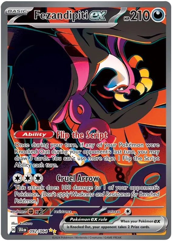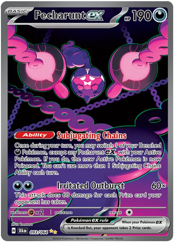 Inmitten kursierender Gerüchte und trügerischer Erinnerungen dreht sich das Rad der Zeit in der Kitakami-Provinz weiter! Wappne dich für den Anbruch der Dunkelheit und entdecke eine boshafte Präsenz, wenn Pecharunt-ex die drei Gefährten – Okidogi ex, Munkidori ex, und Fezandipiti ex – befehligt, seinem niederträchtigen Geheiß zu folgen.